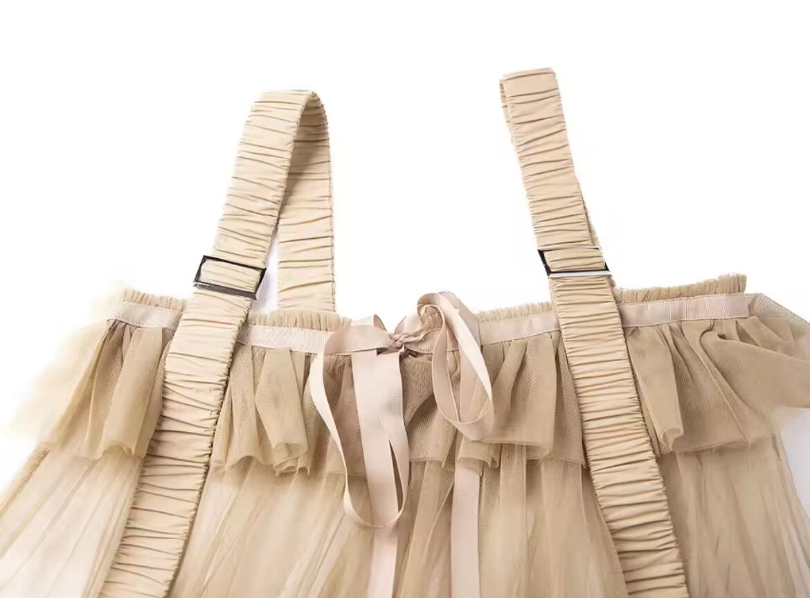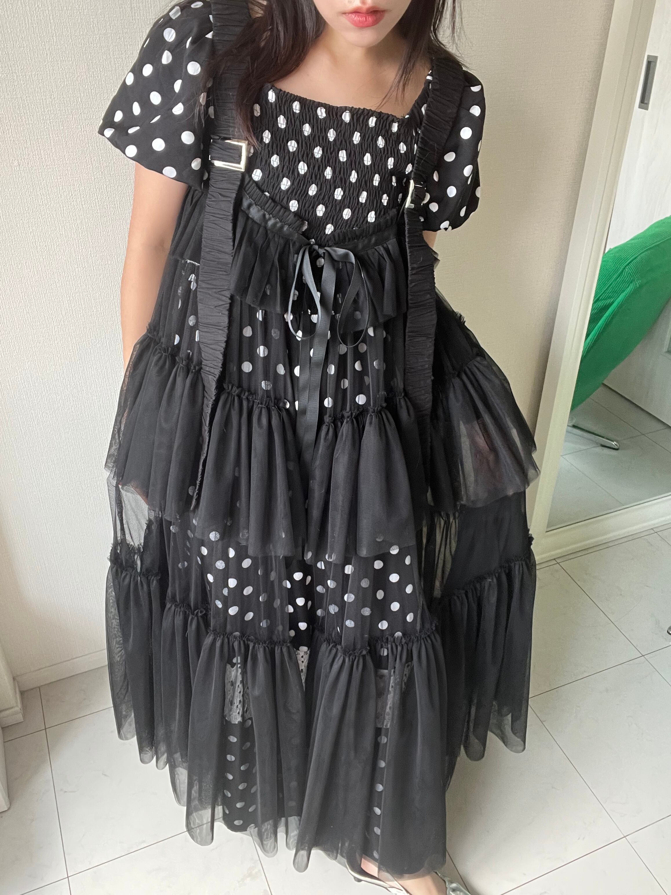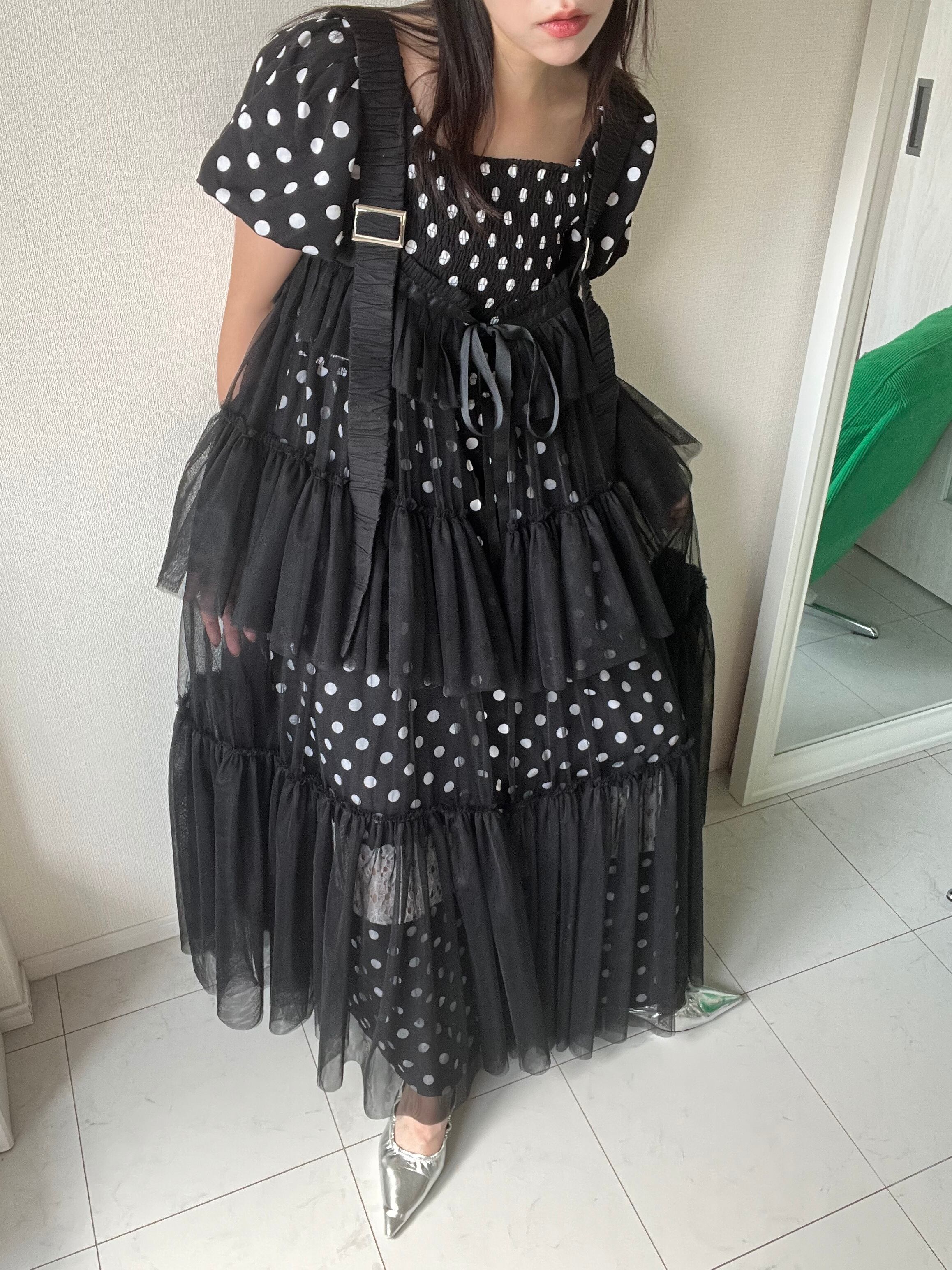 軽やかなチュールをたっぷり重ねた、存在感たっぷりのレイヤードワンピース。