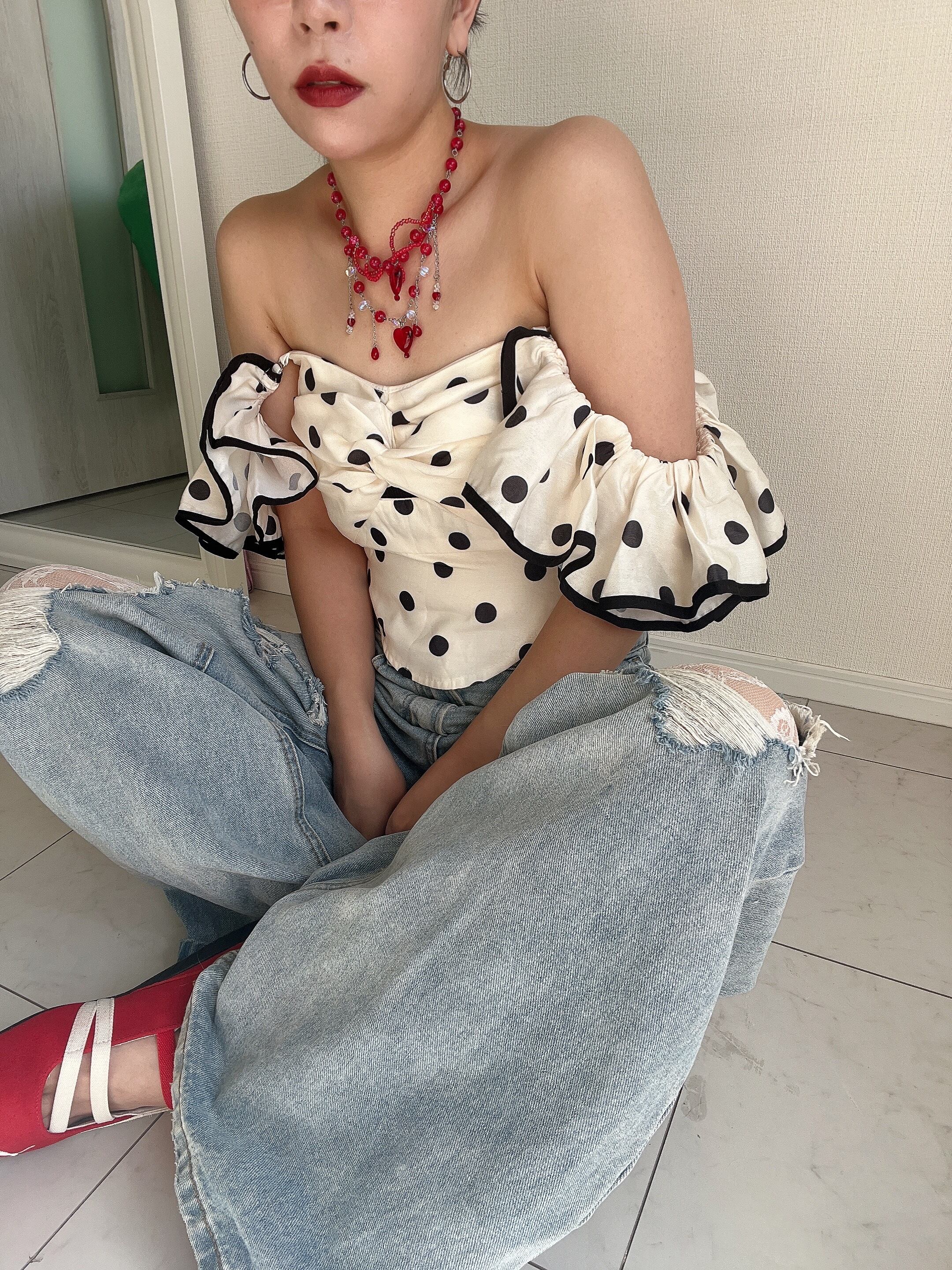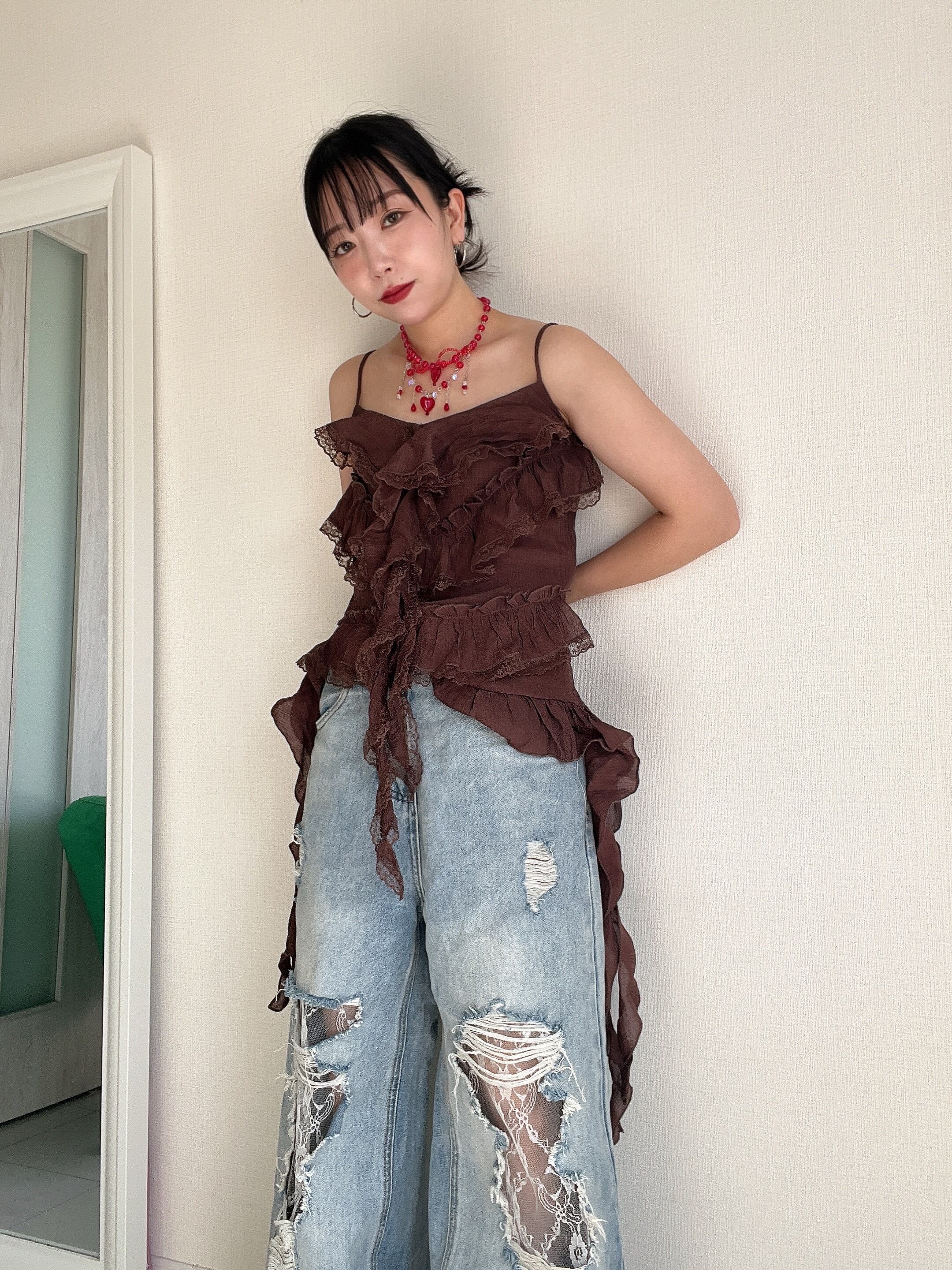ダメージの隙間から、繊細なレースがふわり。