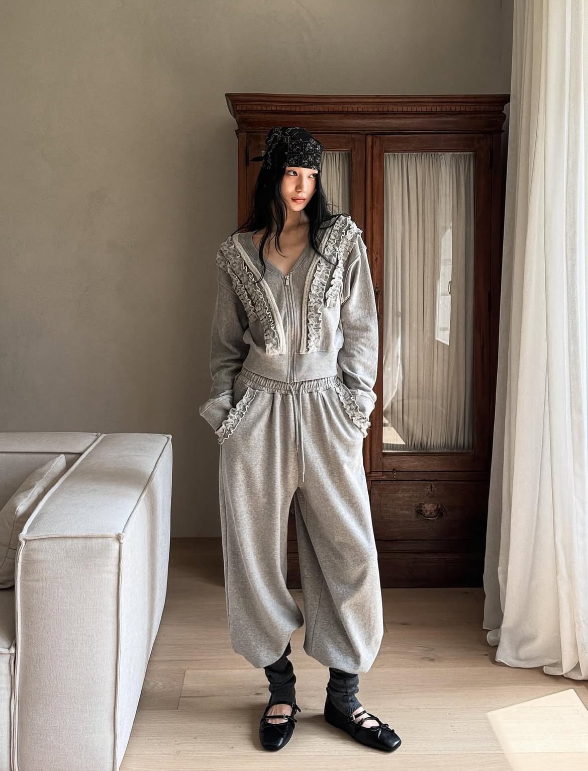 甘さとリラックスを同時に叶える、大人可愛いフリルスウェット。