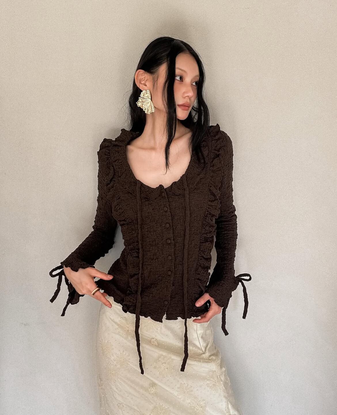 ふわりと軽やかに舞うような、贅沢フリルが主役のロマンティックトップス。