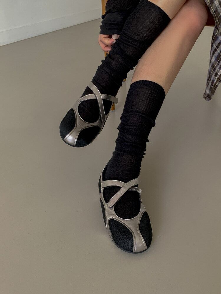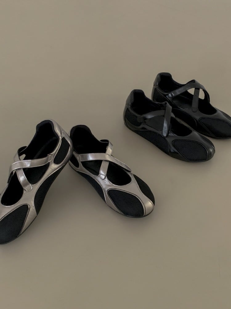メタリック素材とソフトなメッシュのコントラストが軽やかな抜け感を演出しながら、しっかりと足元を引き締めてくれます。